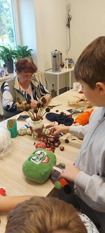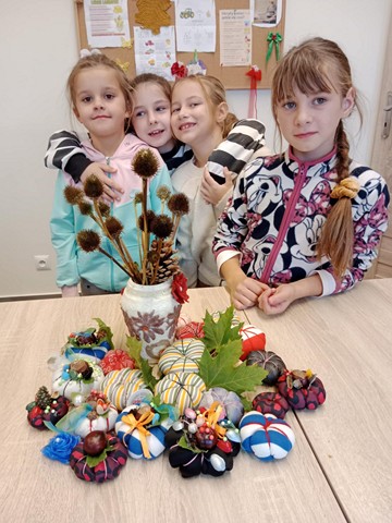 Wspólnie z seniorami wykonaliśmy także kreatywne dynie z materiału, co sprawiło wszystkim wiele radości i pozwoliło na integrację międzypokoleniową.