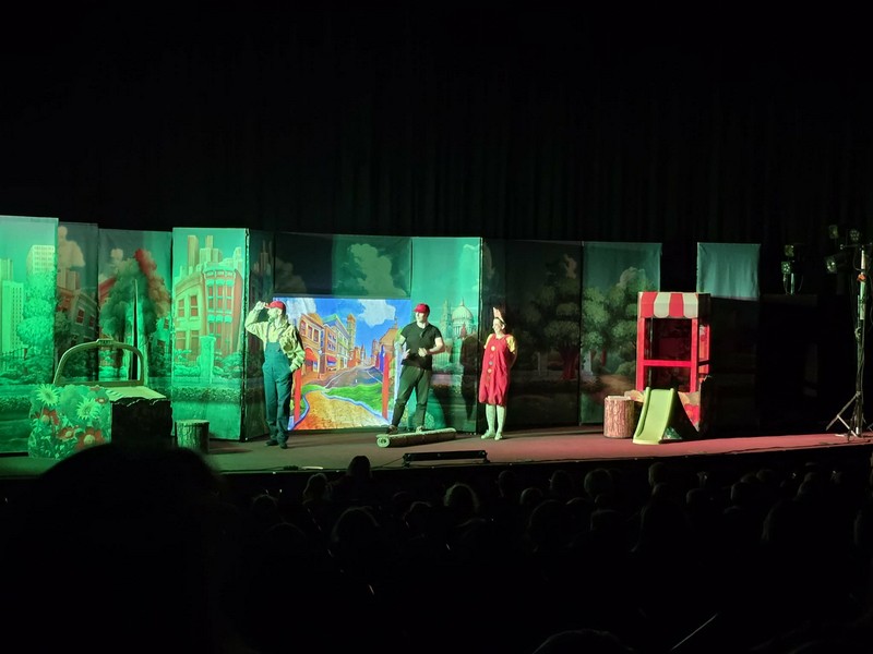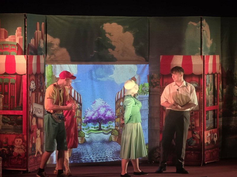 Pierwszym przystankiem był teatr, gdzie dzieci obejrzały spektakl pt. „Karolcia”. Przygody dziewczynki i jej magicznego, niebieskiego koralika zachwyciły wszystkich widzów. Kolorowa scenografia i świetna gra aktorska sprawiły, że na chwilę przenieśliśmy się w świat, w którym każde życzenie może się spełnić.
