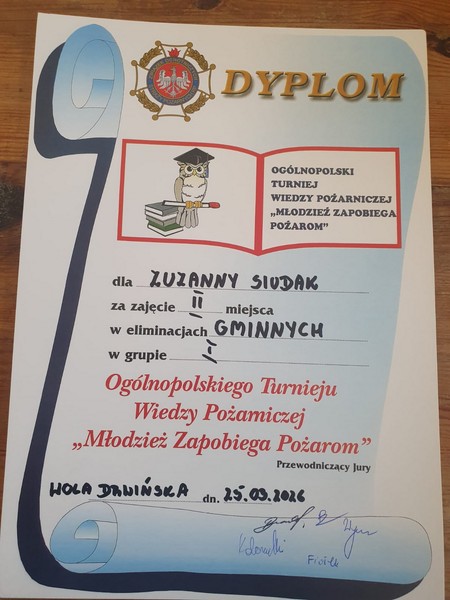 25 marca 2026r. odbyły się gminne eliminacje do Ogólnopolskiego Turnieju Wiedzy Pożarniczej „ Młodzież Zapobiega Pożarom”.