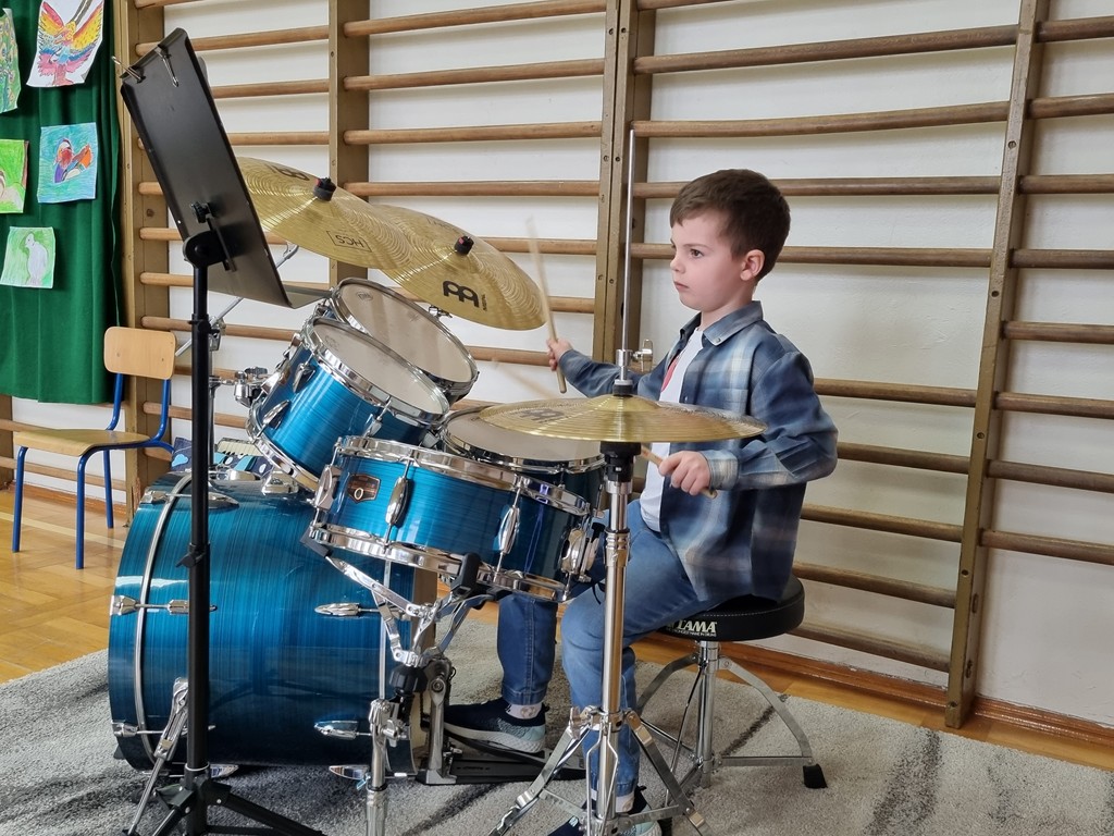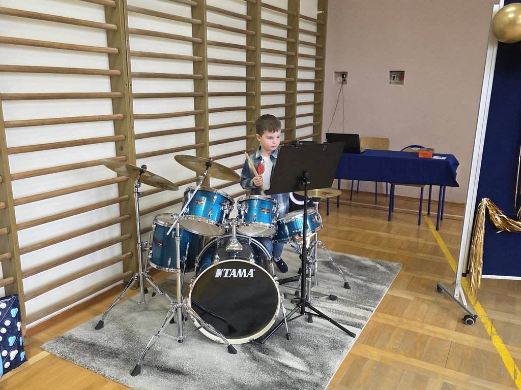 Franiu Gumuła (kl. I) – gra na perkusji,